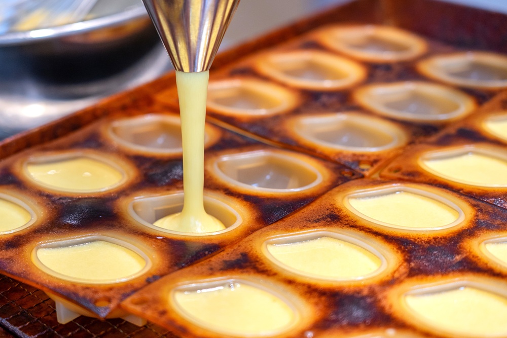 広島三越内の施設で、季節や天候に合わせて水分調整に工夫を凝らしながら自社スタッフが一つひとつ焼きあげる。今年4月、広島三越に初の常設店がオープンとなりました。