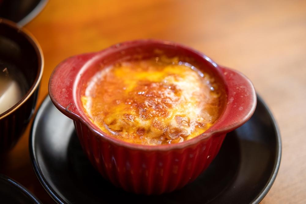 煮込まれたおでんを更にオーブンで焼く「グラタン仕立て」のおでんも人気。「玉ねぎ」は丸ごと1個の玉ねぎを出汁でじっくり煮込んだあと、ソースとチーズを乗せてオーブンで焼き上げた、グラタン風の一品。
