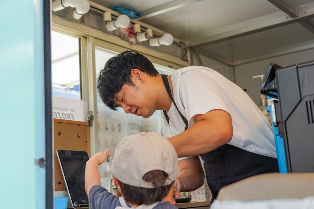 「コーヒー屋なので大人向けではあるんですけど、お子様も楽しめるようなメニュー展開を意識しています。キッチンカーで大人と同じように特別な雰囲気を楽しんでもらえたら」と山本さん。大人たちがコーヒーを手にしたときの柔らかな表情や自然に溢れる笑顔を見て、コーヒーへの憧れも持っているはずと考えます。