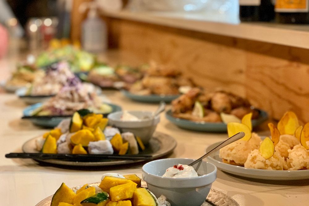 SOIL Setoda 1階に併設されたカフェ。こちらでワークショップ限定メニューをいただきます。 この日のメニューはレモンを乗せて焼いたサワラや、レモンを使用したドレッシングでいただく鯛のカルパッチョ、季節の野菜などを堪能しました。