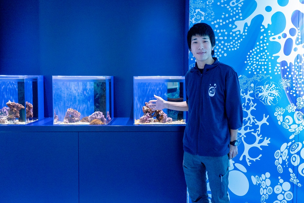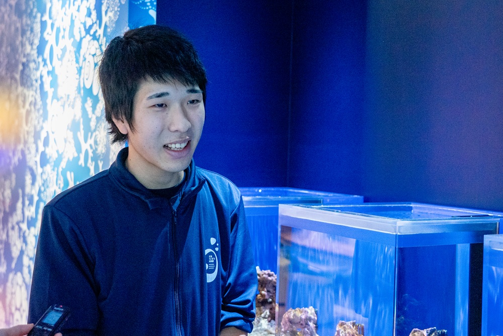 今回お話しを伺ったのは、飼育員の空田さん。中学生の頃から毎週末、地元の水族館へ通い詰めるほどの生き物好きだったそうです。大学で水産学を学んだ後に水族館へと就職し、ここ『広島もとまち水族館』の開館に合わせて広島へ。現在は海水魚の飼育担当をされています。