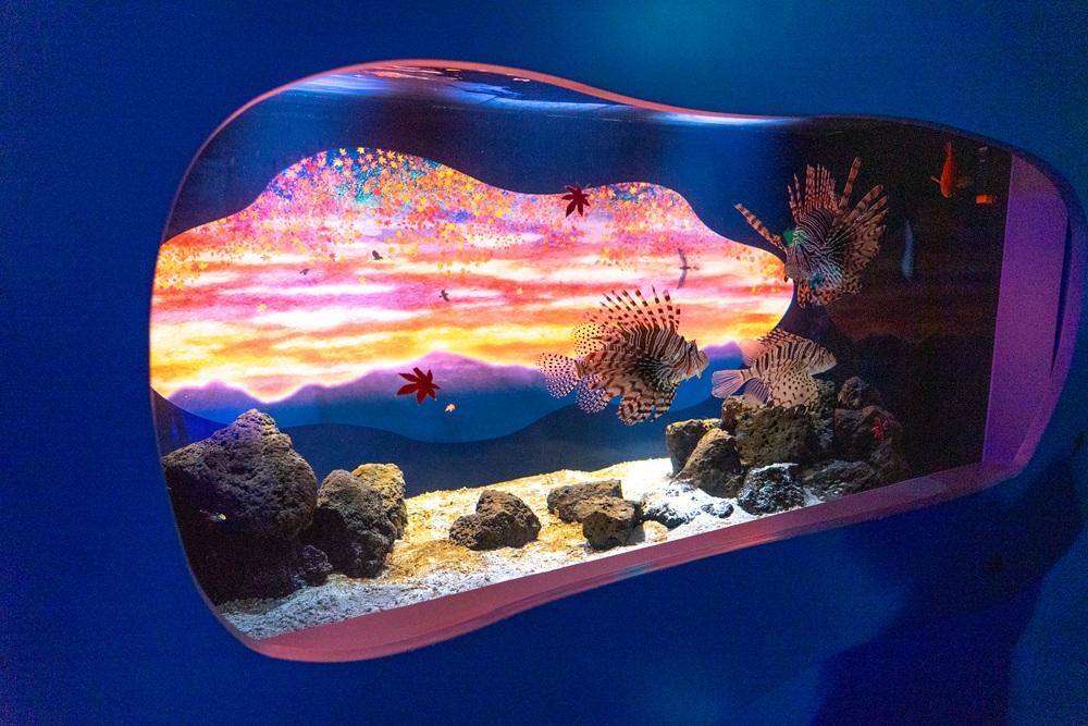 光の切り絵作家・酒井敦美さんによる壮大な切り絵アートやプロジェクションマッピングが楽しめる幻想的な空間「海の花鳥風月」にいる、オニダルマオコゼ。実は背びれに強力な毒を持ち、人にとっては危険な存在でもあるそう。そんな中、ベスト2に選んだ理由は?