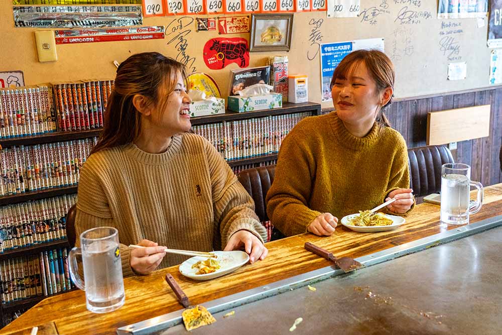 2軒目は合田さんの推し飲食店『お好み焼き鉄板焼ひなた』です。千田地域で長く愛され2026年2月に創業25年目を迎えました。