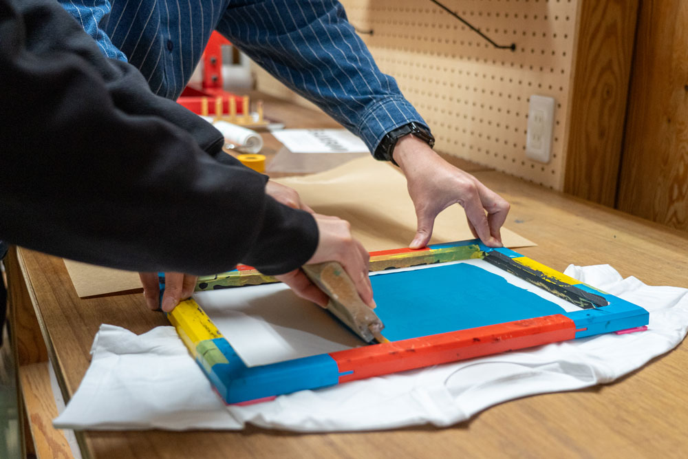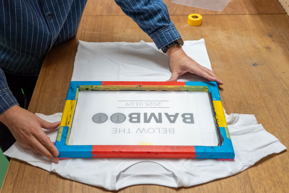 スクリーン印刷は版画の技法の一種で、版自体に孔(あな)を作り、そこにインクが通って印刷される、シンプルな印刷方法。「せーの!」という掛け声から名づけられたこのスペースで、広島CLiP新聞編集部員も実際にTシャツへのスクリーン印刷を体験させてもらいました。
