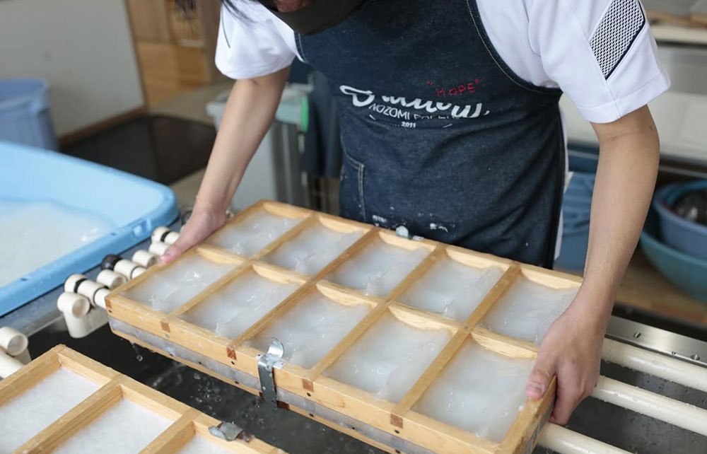 「めぐる、手漉紙。」はすべて、障がいのある方の手漉きで生まれます。単なる“外注先”ではなく、紙づくりの担い手として関わってもらうことで、仕事の継続性や誇りにつながる仕組みを目指しています。